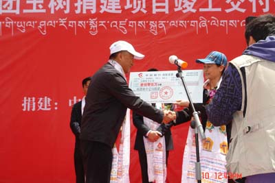 省委常委、省政府常務(wù)副省長、玉樹災(zāi)后重建現(xiàn)場指揮部指揮長徐福順,國務(wù)院國資委綜合局局長劉南昌、省政府副秘書長毛占彪、玉樹州政府副州長布尕、中國建筑材料集團有限公司(以下簡稱中國建材集團)總經(jīng)理姚燕、副總經(jīng)理劉寶瑛,以及省國資委、發(fā)改委、建設(shè)廳、民政廳有關(guān)領(lǐng)導(dǎo)出席了當(dāng)天在結(jié)古鎮(zhèn)舉行的捐贈儀式。青海水電集團總經(jīng)理王海青代表受捐方接受了捐贈支票。劉南昌局長、姚燕總經(jīng)理、布尕副州長分別在儀式上講話。姚燕在講話中表示,中國建材集團還將一如既往地支持災(zāi)區(qū)發(fā)展建設(shè),努力發(fā)揮產(chǎn)業(yè)與科技優(yōu)勢,用新的理念、新的技術(shù)、新的生產(chǎn)方式,為玉樹地震災(zāi)區(qū)災(zāi)后重建做出更大的貢獻(xiàn)。