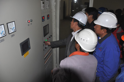 (水電實(shí)業(yè)) 11月2日16時(shí)56分,由青海水電實(shí)業(yè)有限公司自主開發(fā)建設(shè)的第一座水電站——大通寶庫河俄博圖水電站迎來了首臺(tái)機(jī)組并網(wǎng)試運(yùn)行發(fā)電的重要時(shí)刻。正在“引大濟(jì)湟”調(diào)水總干渠項(xiàng)目工地檢查指導(dǎo)工作的青海水電集團(tuán)董事長、黨委書記唐增科同志前往祝賀并啟動(dòng)并網(wǎng)運(yùn)行按鈕。