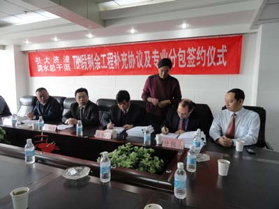 受青海水電集團(tuán)董事長唐增科的委托,副總經(jīng)理吳世周與中鐵隧道股份公司簽署了調(diào)水總干渠TBM段剩余工程補(bǔ)充協(xié)議,中鐵隧道股份公司與CMC公司簽署了調(diào)水總干渠TBM段剩余工程專業(yè)分包合同??偝邪?、分包人代表分別在儀式上發(fā)言,表示將把握好機(jī)遇,認(rèn)真履行義務(wù),全面落實(shí)分包合同,盡快擺脫TBM施工所處的困境,開創(chuàng)工程建設(shè)的新局面,不辜負(fù)項(xiàng)目業(yè)主的期望,為青海經(jīng)濟(jì)社會(huì)發(fā)展做出貢獻(xiàn)。簽約儀式的舉行,標(biāo)志著調(diào)水總干渠剩余工程建設(shè)進(jìn)入克難攻堅(jiān)的關(guān)鍵階段。依照合同約定,CMC公司將在3月中旬進(jìn)場(chǎng)開展交接和設(shè)備改造等工作,為TBM恢復(fù)掘進(jìn)做好準(zhǔn)備。