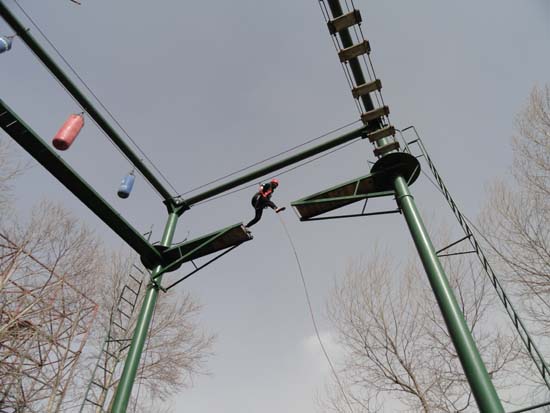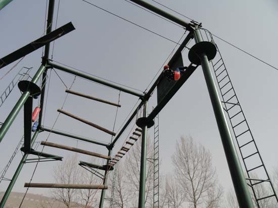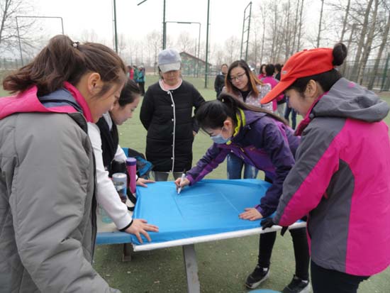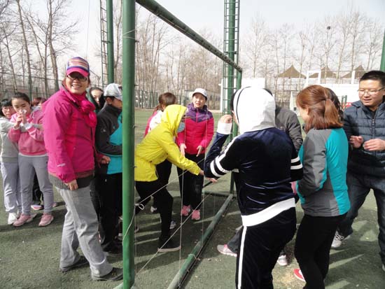 培訓(xùn)當(dāng)天,盡管天氣寒冷、黃沙漫天,但參訓(xùn)隊(duì)員們個(gè)個(gè)精神抖擻,熱情高漲,訓(xùn)練過程有條不紊進(jìn)行?;顒?dòng)開始時(shí),進(jìn)行了破冰熱身、團(tuán)隊(duì)建設(shè)活動(dòng)。全體隊(duì)員分為三組,在限定時(shí)間內(nèi)分別組建各自的隊(duì)名、隊(duì)歌、隊(duì)徽及口號(hào)。隨后,隊(duì)員們信心十足,高呼著團(tuán)隊(duì)口號(hào),在專業(yè)培訓(xùn)師的指導(dǎo)下開始了充滿挑戰(zhàn)的拓展項(xiàng)目。大家相互協(xié)作,互幫互助,順利完成了 “高空斷橋”、“穿越電網(wǎng)”、“千里傳珠”、“盲人方陣”、“搶度金沙江”等拓展內(nèi)容。特別是在閉營(yíng)項(xiàng)目“搶度金沙江”中,大家充分展示出團(tuán)隊(duì)精神和挑戰(zhàn)困難的勇氣,使整個(gè)培訓(xùn)活動(dòng)達(dá)到了高潮。通過這些拓展項(xiàng)目,將挑戰(zhàn)自我,熔煉團(tuán)隊(duì),創(chuàng)造激情,強(qiáng)調(diào)奉獻(xiàn),享受快樂的理念傳達(dá)給了每一位隊(duì)員。活動(dòng)現(xiàn)場(chǎng)笑聲不斷,掌聲不斷,不僅使同志們感受到戶外運(yùn)動(dòng)的魅力,體會(huì)到溝通、協(xié)作的重要性,更引導(dǎo)大家以開放的心態(tài)面對(duì)變化,積極進(jìn)取,啟發(fā)想象力與創(chuàng)造力,進(jìn)一步提高了解決問題的能力,充分展現(xiàn)了水電女職工積極向上,團(tuán)結(jié)進(jìn)取的精神面貌。