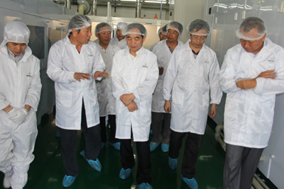在潔凈明亮的現(xiàn)代化車間內(nèi),駱玉林副省長一行參觀了聚能電力一期50MW太陽能電池片生產(chǎn)流水線作業(yè)以及首批試生產(chǎn)太陽能電池片,仔細(xì)詢問和了解了工藝流程、設(shè)備性能、人員配備和產(chǎn)品技術(shù)指標(biāo)等情況,并聽取了青海水電集團(tuán)董事長唐增科、總經(jīng)理王海青以及聚能電力負(fù)責(zé)同志關(guān)于項(xiàng)目建設(shè)、存在主要問題等情況的匯報(bào)。駱副省長對我公司項(xiàng)目建設(shè)及生產(chǎn)情況給予了充分肯定。他強(qiáng)調(diào),由于受國際太陽能大環(huán)境影響,我國太陽能及光伏產(chǎn)業(yè)發(fā)展遇到了前所未有的困難,希望聚能電力及其上級單位緊緊把握我省新能源產(chǎn)業(yè)發(fā)展的有利時(shí)機(jī),立足本身、迎難而上,積極尋求市場,加大技術(shù)革新力度,不斷促進(jìn)企業(yè)健康穩(wěn)定發(fā)展。 (文:陳宏 圖:馬東海