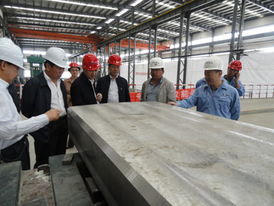 毛占彪副主任一行首先來到青海聚能電力有限公司和青海聚能鈦業(yè)有限公司,進(jìn)入到生產(chǎn)車間和廠區(qū),詳細(xì)察看了正在運(yùn)行的一期年產(chǎn)50兆瓦太陽能電池片生產(chǎn)線及一期年產(chǎn)3000噸鈦及鈦合金熔鑄EB爐,深入了解其設(shè)備技術(shù)水平、工藝流程原料供應(yīng)情況,并察看了以及近期生產(chǎn)的部分成品,全面掌握了其質(zhì)量特性、銷售價(jià)格及市場前景等方面的信息。隨后,省國資委領(lǐng)導(dǎo)又驅(qū)車來到大通縣寶庫河俄博圖水電站工地,進(jìn)入到正在加緊進(jìn)行投產(chǎn)前準(zhǔn)備工作的發(fā)電廠房內(nèi),了解了項(xiàng)目概況、實(shí)施進(jìn)度及青海水電實(shí)業(yè)有限公司的發(fā)展歷程。