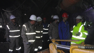 唐董事長和王總經(jīng)理深入到引水隧洞進(jìn)口段、出口段施工掌子面,詳細(xì)了解了進(jìn)口段TBM掘進(jìn)、設(shè)備狀況和當(dāng)前存在的問題,以及出口段旁通洞、TBM改造洞室開挖掘進(jìn)情況。他們要求進(jìn)口段承包人進(jìn)一步加強(qiáng)技術(shù)力量,及時(shí)查找設(shè)備故障原因并予以迅速解決,堅(jiān)持穩(wěn)中求進(jìn),逐步將設(shè)備調(diào)整到最佳狀態(tài),并要提前做好易損易壞配件采購和儲(chǔ)備工作,確保TBM正常運(yùn)行。同時(shí),針對出口段參建各方強(qiáng)調(diào)要在確保安全的前提下,統(tǒng)籌安排,改進(jìn)組織協(xié)調(diào),切實(shí)加快施工進(jìn)度。