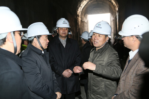當天中午12時,郝鵬省長、馬順清、嚴金海副省長率領高華秘書長、張文華副秘書長,以及省總工會、省發(fā)改委、省政府辦公廳的有關負責同志,來到引大濟湟工程現場調研。調水總干渠是“引大濟湟”的控制性輸水工程。在大坂山北坡的總干渠進口,省領導踩著沙礫,走進隧洞,詳細了解工程每天的掘進情況。了解到卡機脫困這個長期制約工程進度的突出難題得到有效解決,項目建設正在扎實有序推進時,郝鵬十分高興,他指出,一定要加大現場協調力度,狠抓施工關鍵環(huán)節(jié),努力破解技術難題,盡快實現人工鉆爆和TBM機相結合的掘進,在確保工程質量和安全的前提下,一米一米地倒排工期,加快工程進度,早日將剩余約8千米貫通。隨后,郝鵬省長向青海水電集團駐工地一線代表頒發(fā)了省委省政府春節(jié)慰問金。