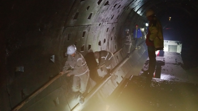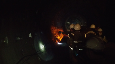 檢查組在察看調(diào)水總干渠出口段工區(qū)后,乘小型軌道車穿越引水隧洞全線,利用三個(gè)多小時(shí)時(shí)間,對施工掌子面現(xiàn)場的安全設(shè)施運(yùn)行狀態(tài),以及豆礫石回填灌漿、混凝土襯砌、鋼拱架安裝及缺陷處理等施工情況進(jìn)行細(xì)致檢查,了解隧洞出口段F4/F5斷層帶管片變形段施工處理情況,對各施工單位進(jìn)一步合理分工,加強(qiáng)協(xié)調(diào)配合,強(qiáng)化現(xiàn)場管理,狠抓安全質(zhì)量,加快推進(jìn)工程建設(shè)提出了具體要求。