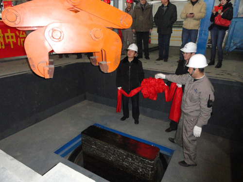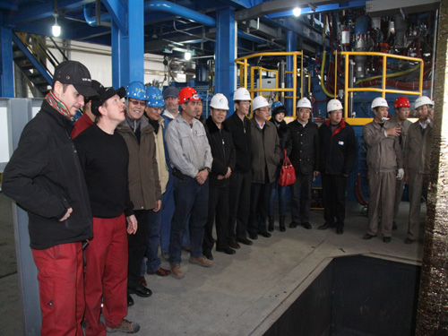(中外合作雙方代表在現(xiàn)場觀看鈦錠出爐)