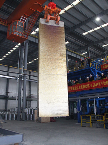 12月14日上午10時30分,青海聚能鈦業(yè)有限公司以熔煉功率為4800千瓦電子束冷床(簡稱EB爐),成功產出重達15噸的超大規(guī)格純鈦錠,創(chuàng)造了我國鈦金屬鑄錠行業(yè)的新記錄,也標志著該公司投資5.4億元的鈦及鈦合金熔鑄項目基本建成,并躍居中國EB爐鑄錠行業(yè)產能之首。